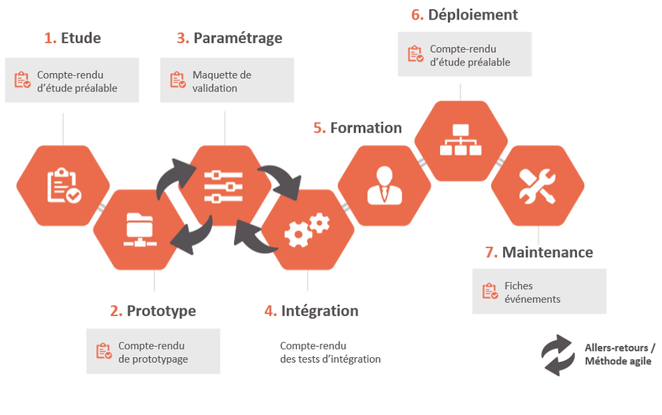 Chez nous, la conduite de vos projets est réalisée par des chefs de projet expérimentés ayant une très bonne connaissance des enjeux industriels et RH. Nos équipes vous apportent un très haut niveau de qualité et la réussite de vos projets réside essentiellement dans la connaissance de vos besoins et dans la validation conjointe des différentes étapes du projet. Le groupe OSIRIS a mis en place une vraie culture « méthode agile » afin de pouvoir impliquer le client dans la gestion du projet d’implémentation de votre solution de gestion ou de logiciel RH. L’objectif phare de l’approche agile est la satisfaction du client et l’adaptation à ses nouvelles idées ou ses remarques. Obtenir un produit qui soit le plus proche des besoins du client est un réel enjeu, et c’est pourquoi l’approche agile est devenue la méthodologie, la philosophie suivie par le groupe.